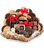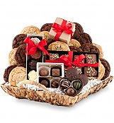 The lucky recipient will be treated to a basket filled with an incredibly large assortment of chocolate delights, including 24 rich gourmet cookies made with Guittard Chocolate. Moist and chewy, these fresh cookies always exceed expectations.