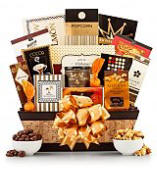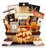 Presented in an elegant willow basket, this rich variety of gourmet snacks is ideal for satisfying a party of one or a small crowd.